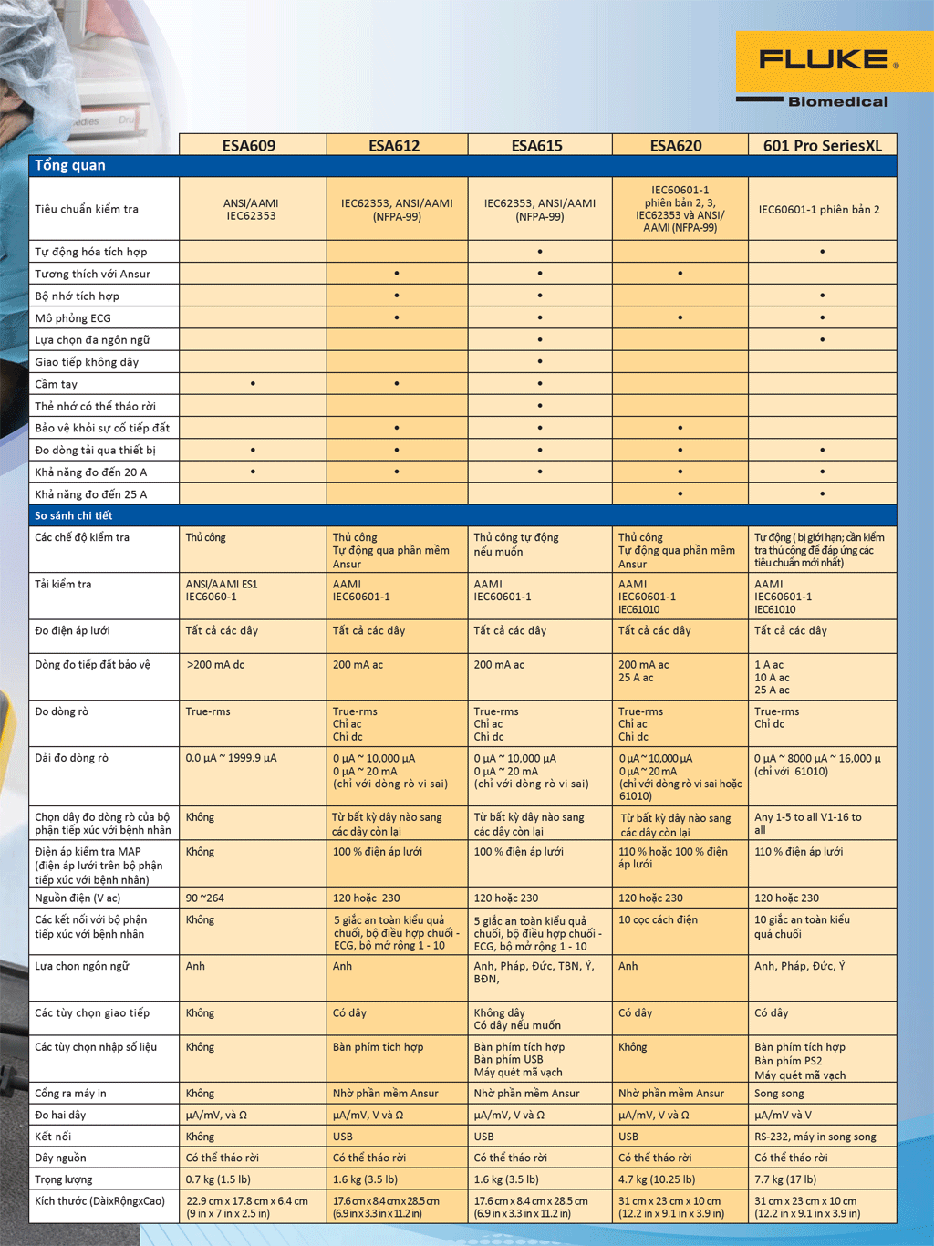 | Thiết bị phân tích an toàn điện tự động ESA615 - Kiểm tra theo bất kỳ tiêu chuẩn nào chỉ trong vài phút Thiết bị phân tích an toàn điện tự động ESA615 thực hiện tất cả các phép kiểm tra an toàn điện chính, mô phỏng ECG, đo điện áp điểm – điểm, dòng rò và điện trở phù hợp với các tiêu chuẩn an toàn điện mới nhất của ANSI / AAMI, IEC và các tiêu chuẩn an toàn điện quốc tế khác. - Tích hợp tính năng tự động hóa với các quy trình kiểm tra tự động - Tích hợp chức năng của một thiết bị mô phỏng ECG, đồng hồ vạn năng và thiết bị phân tích an toàn điện trong một thiết bị - Giao diện người dùng đơn giản, đa ngôn ngữ | ESA615 |
