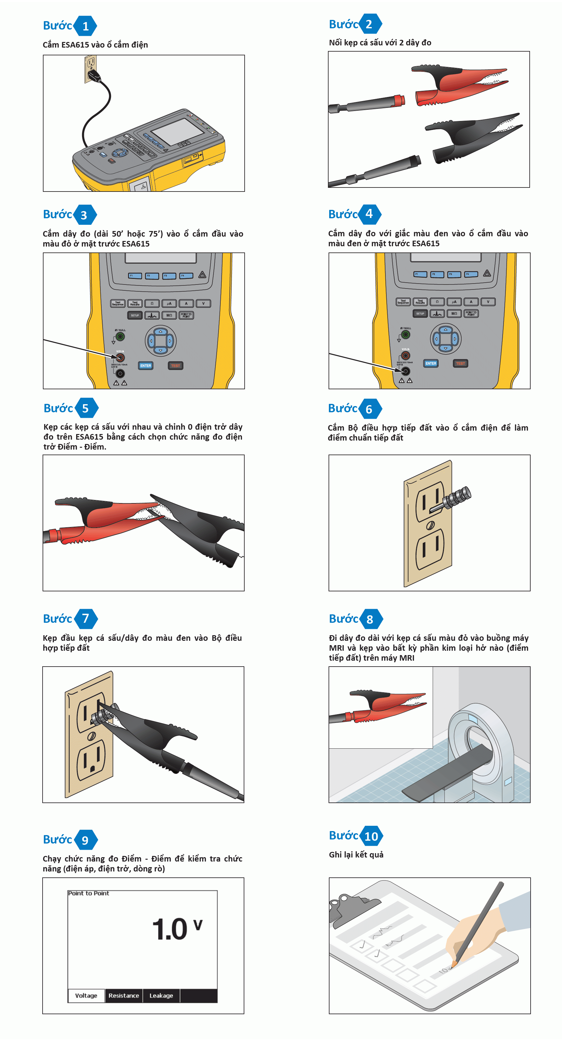 Dưới đây là cách kiểm tra an toàn điện cho Máy cộng hưởng từ một cách dễ dàng trong 10 bước với Thiết bị phân tích an toàn điện tự động Model: ESA615 sử dụng chức năng đo Điểm – Điểm